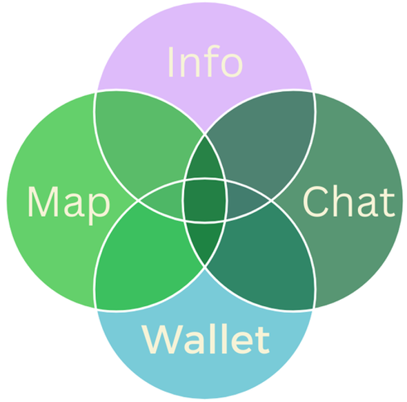 Simple, yet complete, the information architecture of the app is displayed via 2 types of accounts: production team and guest. Each designed based on relevance. Both display a menu of 4 categories: INFO, MAP, CHAT and WALLET.